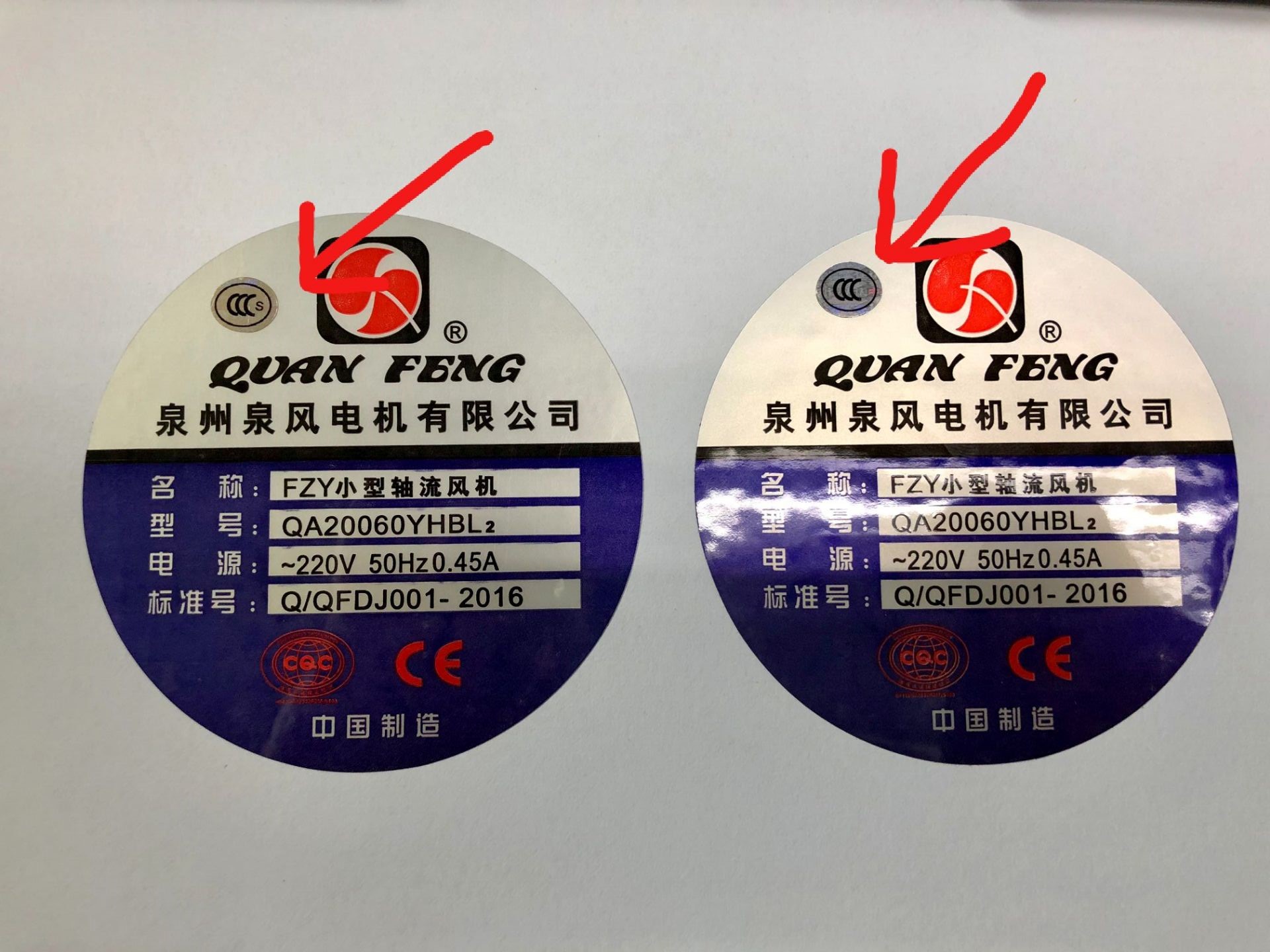 泉州泉風(fēng)電機(jī)所以系列產(chǎn)品,產(chǎn)品商標(biāo)上所貼CCC標(biāo)志,在一段時(shí)間內(nèi)會(huì)出現(xiàn) CCCs和CCC,兩種標(biāo)志。